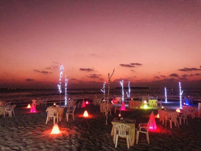- Romantic candle-lit dinner for two on the beach under the stars, three-course succulent seafood dinner served by a personal Waiter