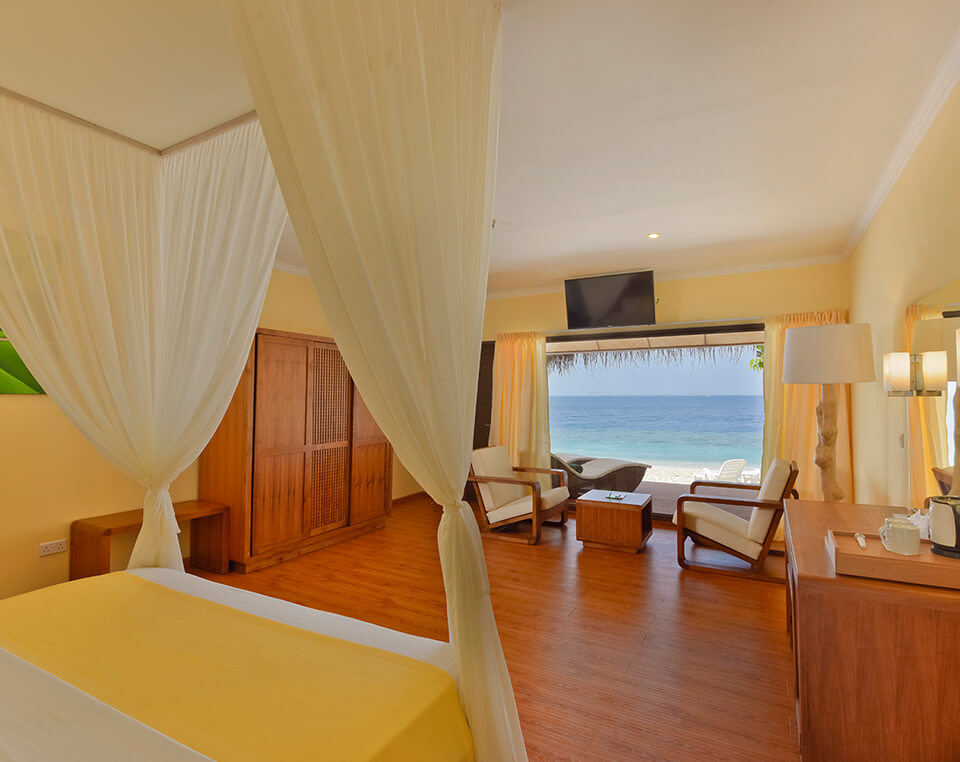 Beach bungalows by the shore opens up to sandy stretches. Enjoy the echoes of ocean breaks, the ocean breeze rustling palm trees and the songs of the birds as they flitter through the island foliage. Stroll barefoot on the powder soft white sands, immersing yourself in a world of simplicity and island rhythms.