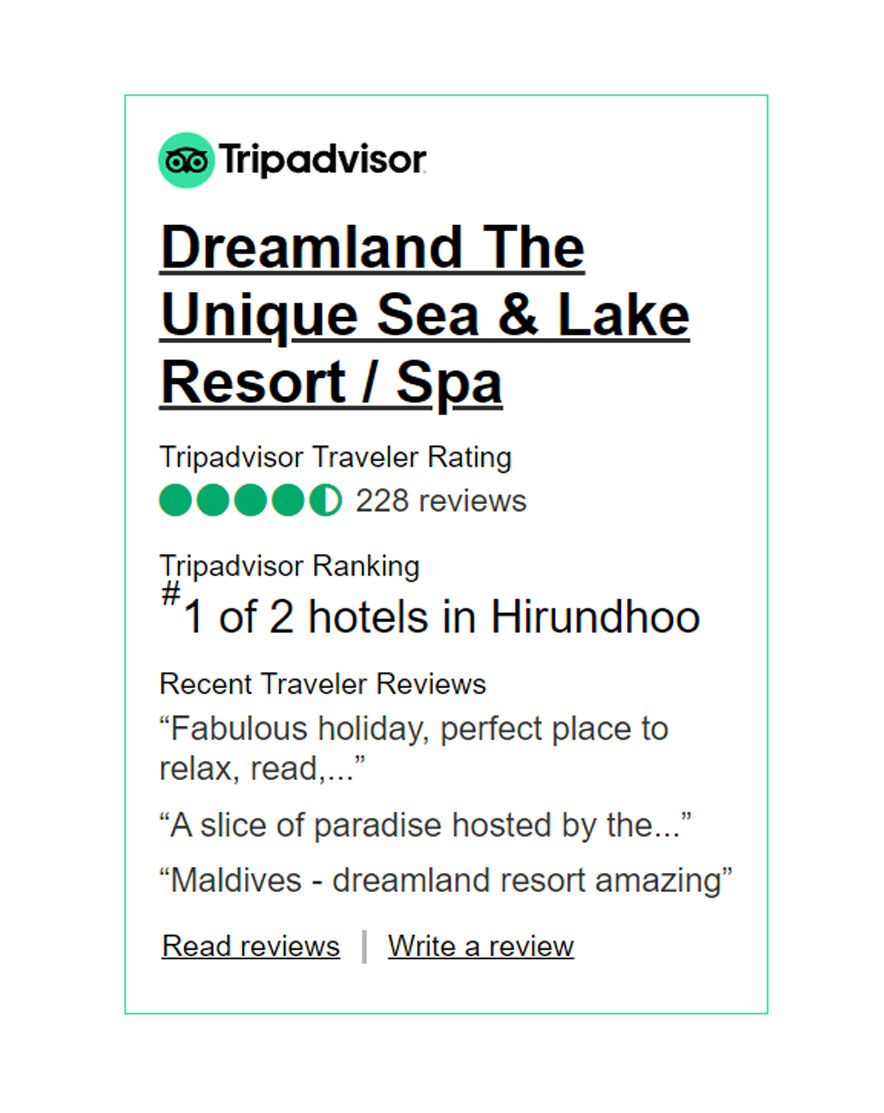 Discover the breath-taking beauty of Dreamland The Unique Sea & Lake Resort / Spa. Located in Baa Atoll of the Maldives, sunny blue skies, lush flora and calm waters meld together into an unforgettable experience.